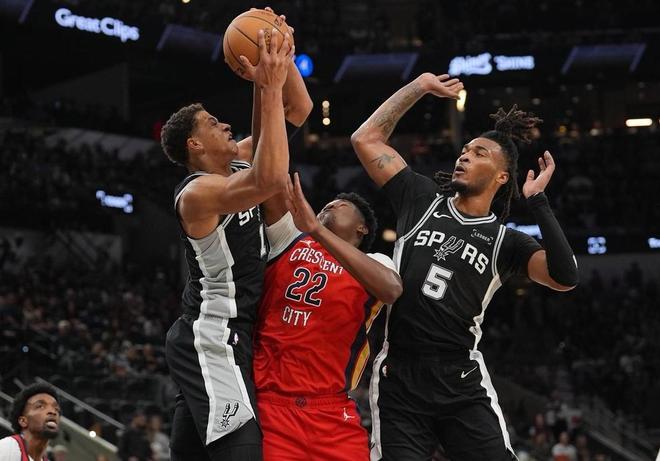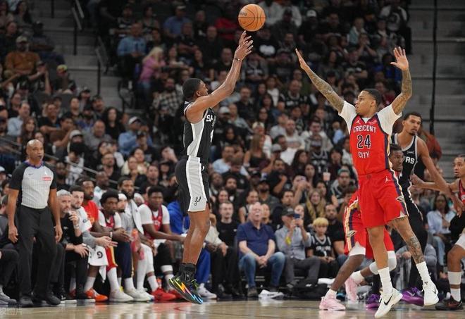 另一边的鹈鹕队,2胜6负排名西部倒数第2,本赛季基本上是摆烂的节奏了,两大得分核心锡安,普尔,相继受伤,另一个全明星后卫穆雷也还没复出,不知道鹈鹕这个地方,是不是风水有问题。本场比赛,双方在首发阵容上面,鹈鹕这边派出的是,费尔斯,墨菲,琼斯,萨迪克贝和卢尼,马刺这边派出的是,福克斯,卡斯尔,瓦塞尔,巴恩斯和文班亚马。首节比赛开始,马刺率先拿到球权,瓦塞尔三分线外直接开花,打进本场比赛首个进球,文班亚马拉弓暴扣轻松打进,墨菲手腕一抖的补篮命中帮助鹈鹕开张,文班再抡起双锤,来一个毁灭暴扣。